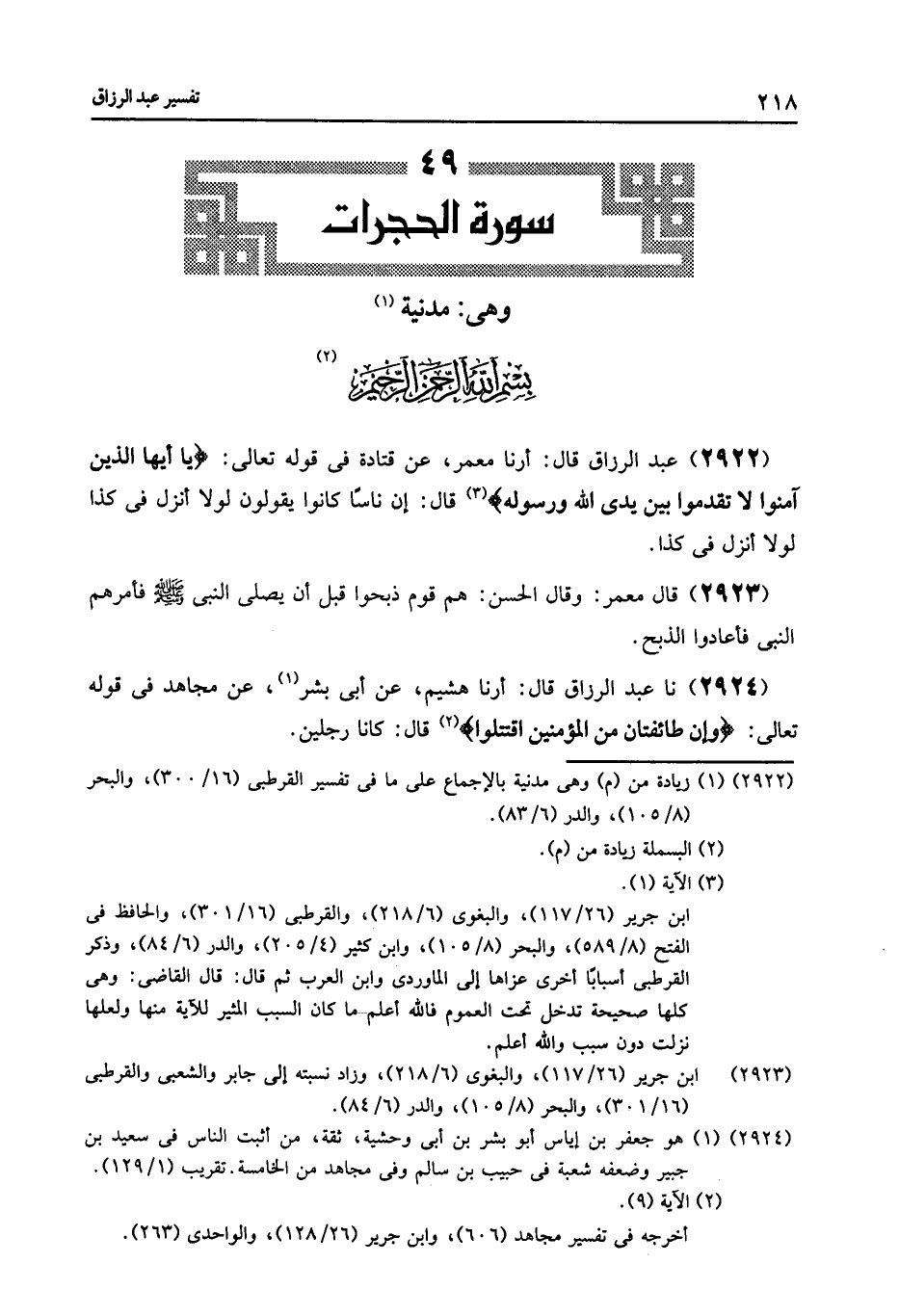 §سُورَةُ الْحُجُرَاتِ وَهِيَ مَدَنِيَّةٌ بِسْمِ اللَّهِ الرَّحْمَنِ الرَّحِيمِ
