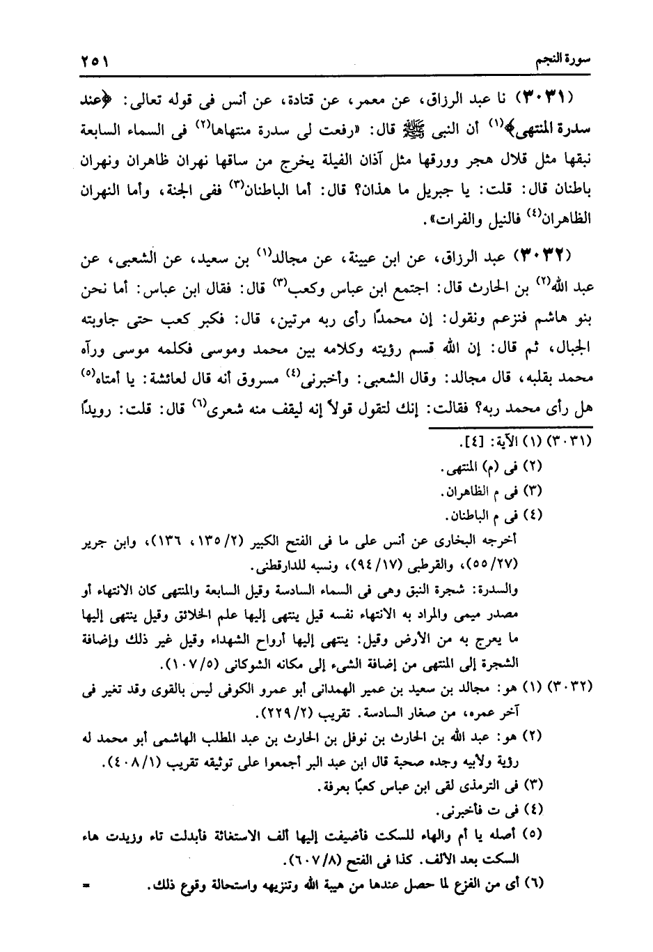 3033 - عَبْدُ الرَّزَّاقِ قَالَ: أرنا ابْنُ التَّيْمِيِّ , عَنِ الْمُبَارَكِ بْنِ فَضَالَةَ , قَالَ: «كَانَ §الْحَسَنُ يَحْلِفُ بِاللَّهِ ثَلَاثَةً لَقَدْ رَأَى مُحَمَّدٌ رَبَّهُ»