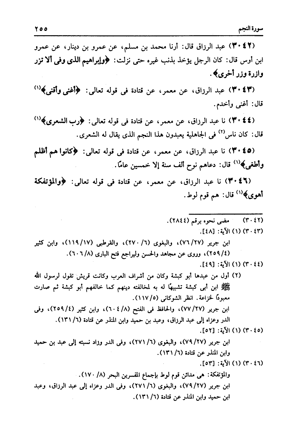 3046 - عَنْ مَعْمَرٍ , عَنْ قَتَادَةَ , فِي قَوْلِهِ تَعَالَى: {§وَالْمُؤْتَفِكَةَ أَهْوَى} [النجم: 53] قَالَ: «هُمْ قَوْمُ لُوطٍ»