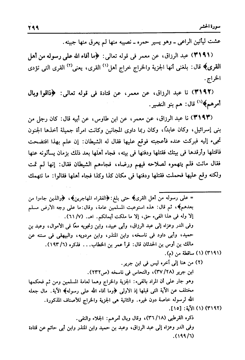 3191 - عَنْ مَعْمَرٍ , فِي قَوْلِهِ تَعَالَى: {مَا أَفَاءَ اللَّهُ عَلَى رَسُولِهِ مِنْ أَهْلِ الْقُرَى} [الحشر: 7] قَالَ: «§بَلَغَنِي أَنَّهَا الْجِزْيَةُ , وَالْخَرَاجُ خَرَاجُ أَهْلِ الْقُرَى , يَعْنِي الْقُرَى الَّتِي تُؤَدِّي الْخَرَاجَ»