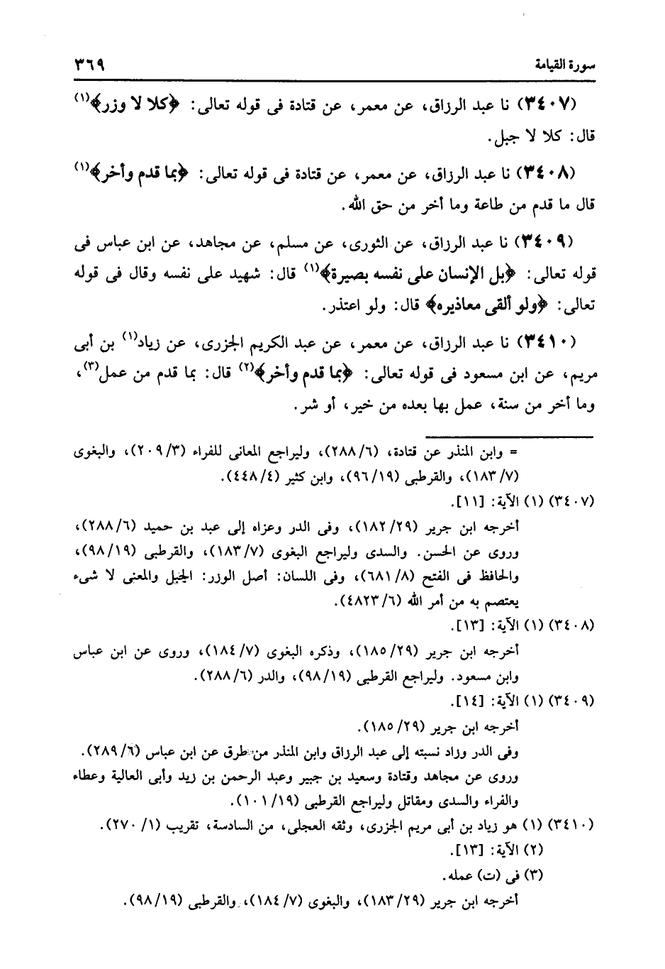 3415 - عَنْ مَعْمَرٍ , عَنْ قَتَادَةَ , فِي قَوْلِهِ تَعَالَى: {§أَنْ يُتْرَكَ سُدًى} [القيامة: 36] قَالَ: «أَنْ يُهْمَلَ»
