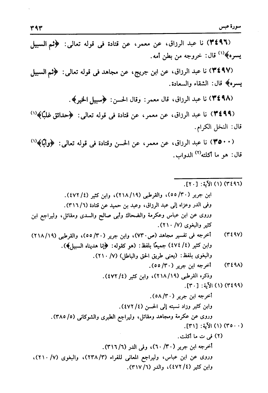 3497 - عَنِ ابْنُ جُرَيْجٍ , عَنْ مُجَاهِدٍ , فِي قَوْلِهِ تَعَالَى: {§ثُمَّ السَّبِيلَ يَسَّرَهُ} [عبس: 20] قَالَ: «الشَّقَاءُ وَالسَّعَادَةُ»
