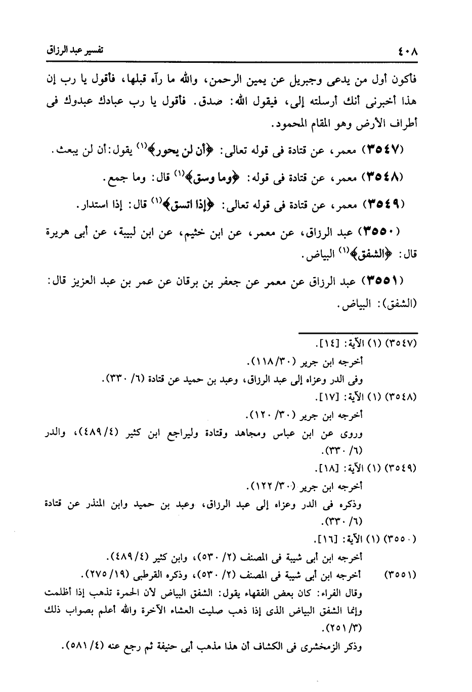 3549 - مَعْمَرٌ , عَنْ قَتَادَةَ , فِي قَوْلِهِ تَعَالَى: {§إِذَا اتَّسَقَ} [الانشقاق: 18] قَالَ: «إِذَا اسْتَدَارَ»