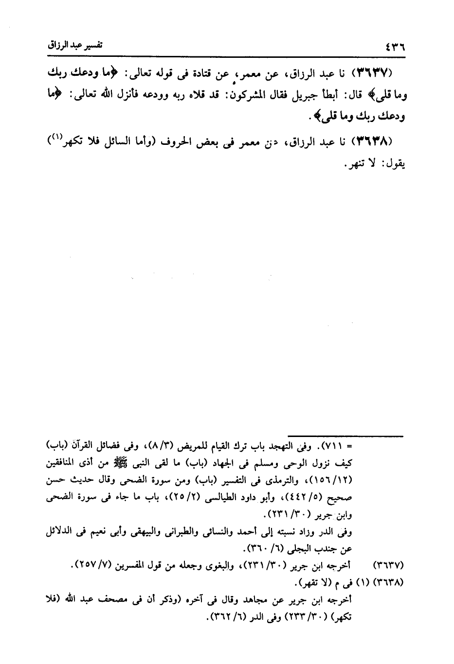 3638 - عَنْ مَعْمَرٌ فِي بَعْضِ الْحُرُوفِ: « (§وَأَمَّا السَّائِلَ فَلَا تَكْهَرْ) » , يَقُولُ: لَا تَنْهَرْ