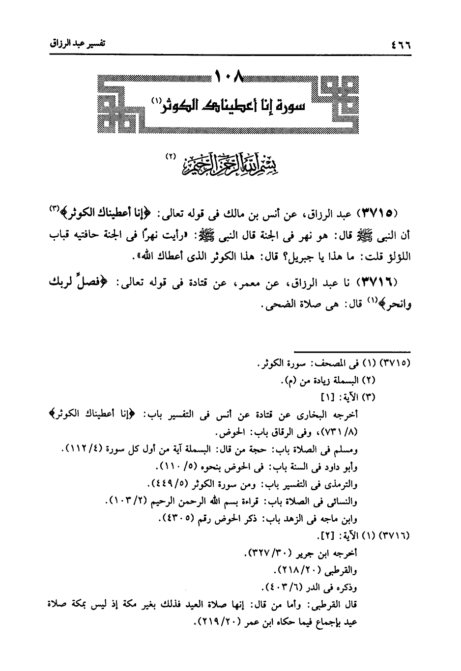 §سُورَةُ إِنَّا أَعْطَيْنَاكَ الْكَوْثَرَ بِسْمِ اللَّهِ الرَّحْمَنِ الرَّحِيمِ