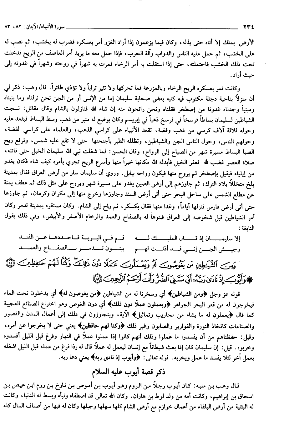 وَمِنَ الشَّياطِينِ مَنْ يَغُوصُونَ لَهُ وَيَعْمَلُونَ عَمَلاً دُونَ ذلِكَ وَكُنَّا لَهُمْ حافِظِينَ (82) وَأَيُّوبَ إِذْ نادى رَبَّهُ أَنِّي مَسَّنِيَ الضُّرُّ وَأَنْتَ أَرْحَمُ الرَّاحِمِينَ (83)
