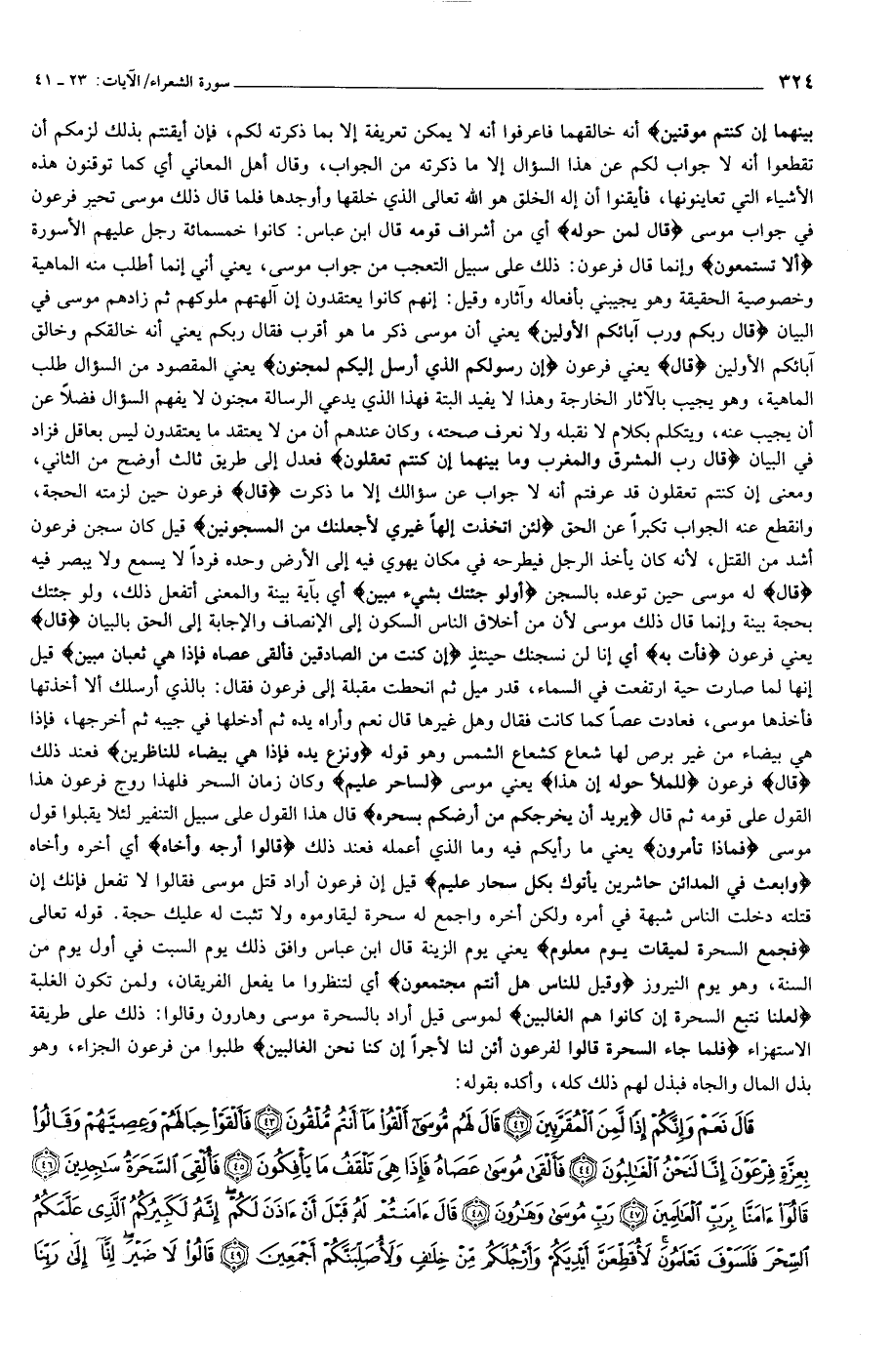 أنه خالقهما فاعرفوا أنه لا يمكن تعريفة إلا بما ذكرته لكم، فإن أيقنتم بذلك لزمكم أن تقطعوا أنه لا جواب لكم عن هذا السؤال إلا ما ذكرته من الجواب، وقال أهل المعاني أي كما توقنون هذه الأشياء التي تعاينونها، فأيقنوا أن إله الخلق هو الله تعالى الذي خلقها وأوجدها فلما قال ذلك موسى تحير فرعون في جواب موسى قالَ لِمَنْ حَوْلَهُ أي من أشراف قومه قال ابن عباس: كانوا خمسمائة رجل عليهم الأسورة أَلا تَسْتَمِعُونَ وإنما قال فرعون: ذلك على سبيل التعجب من جواب موسى، يعني أني إنما أطلب منه الماهية وخصوصية الحقيقة وهو يجيبني بأفعاله وآثاره وقيل: إنهم كانوا يعتقدون إن آلهتهم ملوكهم ثم زادهم موسى في البيان قالَ رَبُّكُمْ وَرَبُّ آبائِكُمُ الْأَوَّلِينَ يعني أن موسى ذكر ما هو أقرب فقال ربكم يعني أنه خالقكم وخالق آبائكم الأولين قالَ يعني فرعون إِنَّ رَسُولَكُمُ الَّذِي أُرْسِلَ إِلَيْكُمْ لَمَجْنُونٌ يعني المقصود من السؤال طلب الماهية، وهو يجيب بالآثار الخارجة وهذا لا يفيد البتة فهذا الذي يدعي الرسالة مجنون لا يفهم السؤال فضلا عن أن يجيب عنه، ويتكلم بكلام لا نقبله ولا نعرف صحته، وكان عندهم أن من لا يعتقد ما يعتقدون ليس بعاقل فزاد في البيان قالَ رَبُّ الْمَشْرِقِ وَالْمَغْرِبِ وَما بَيْنَهُما إِنْ كُنْتُمْ تَعْقِلُونَ فعدل إلى طريق ثالث أوضح من الثاني، ومعنى إن كنتم تعقلون قد عرفتم أنه لا جواب عن سؤالك إلا ما ذكرت قالَ فرعون حين لزمته الحجة، وانقطع عنه الجواب تكبرا عن الحق لَئِنِ اتَّخَذْتَ إِلهَاً غَيْرِي لَأَجْعَلَنَّكَ مِنَ الْمَسْجُونِينَ قيل كان سجن فرعون أشد من القتل، لأنه كان يأخذ الرجل فيطرحه في مكان يهوي فيه إلى الأرض وحده فردا لا يسمع ولا يبصر فيه قالَ له موسى حين توعده بالسجن أَوَلَوْ جِئْتُكَ بِشَيْءٍ مُبِينٍ أي بآية بينة والمعنى أتفعل ذلك، ولو جئتك بحجة بينة وإنما قال ذلك موسى لأن من أخلاق الناس السكون إلى الإنصاف والإجابة إلى الحق بالبيان قالَ يعني فرعون فَأْتِ بِهِ أي إنا لن نسجنك حينئذنْ كُنْتَ مِنَ الصَّادِقِينَ فَأَلْقى عَصاهُ فَإِذا هِيَ ثُعْبانٌ مُبِينٌ