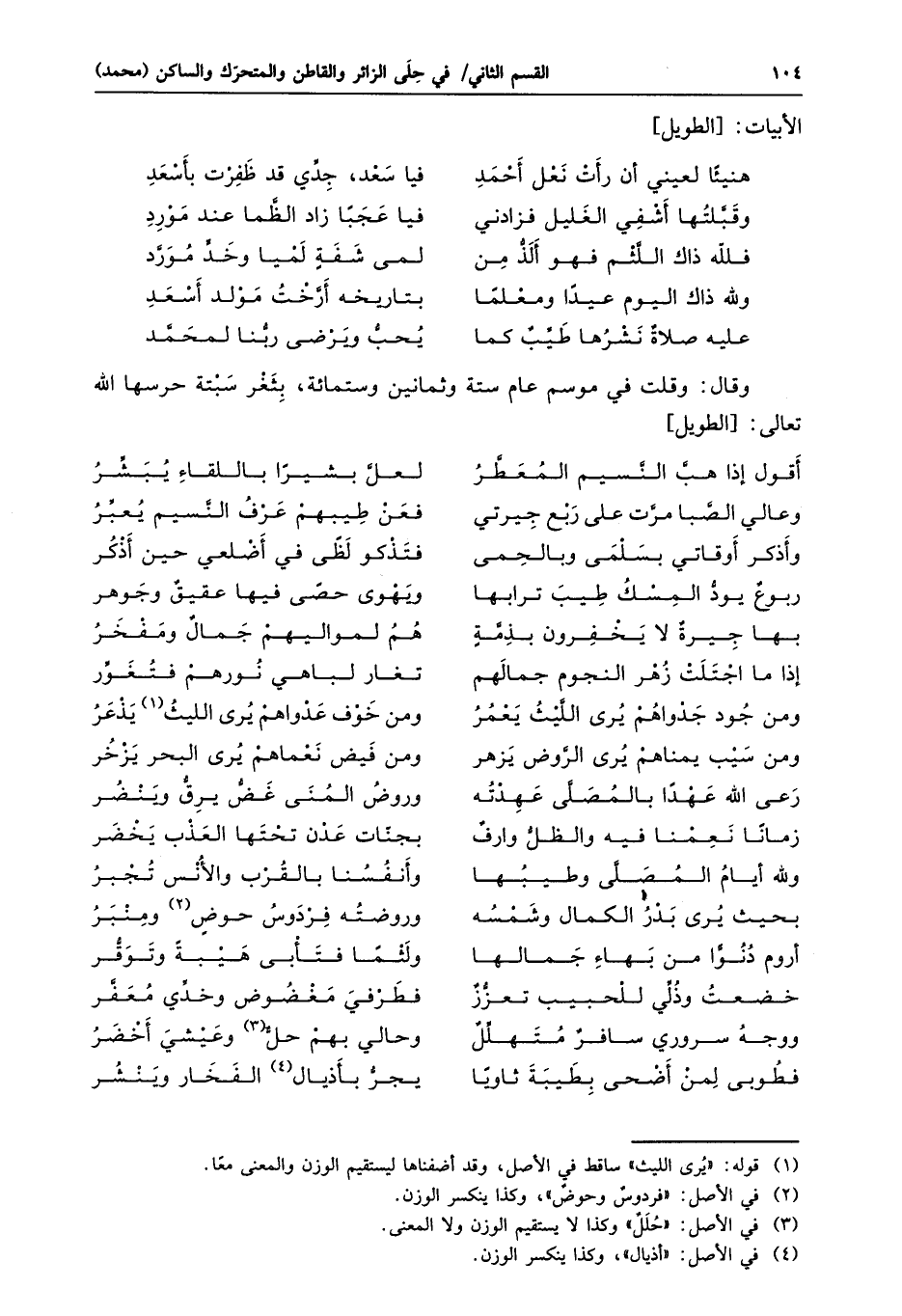 فطوبى لمن أضحى بطيبة ثاويا ... يجرّ بأذيال «4» الفخار وينشر