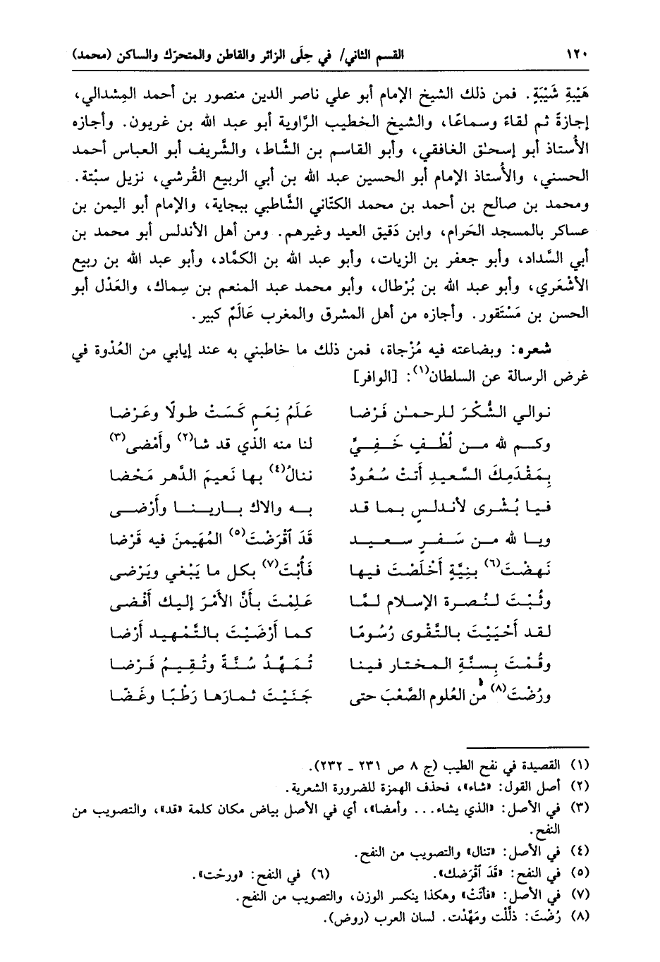 شعره: وبضاعته فيه مزجاة، فمن ذلك ما خاطبني به عند إيابي من العدوة في غرض الرسالة عن السلطان «1» : [الوافر]