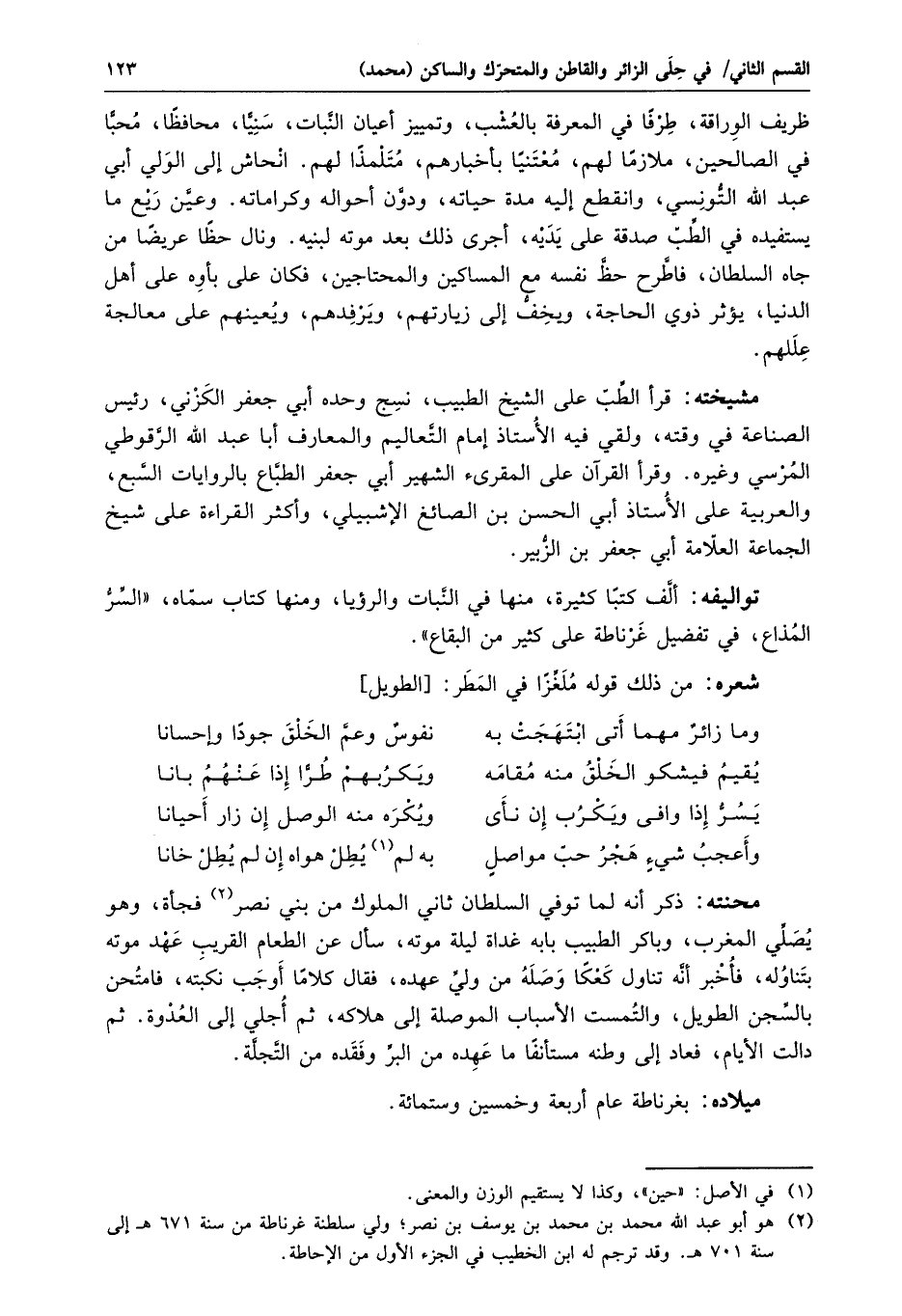 ميلاده: بغرناطة عام أربعة وخمسين وستمائة.
