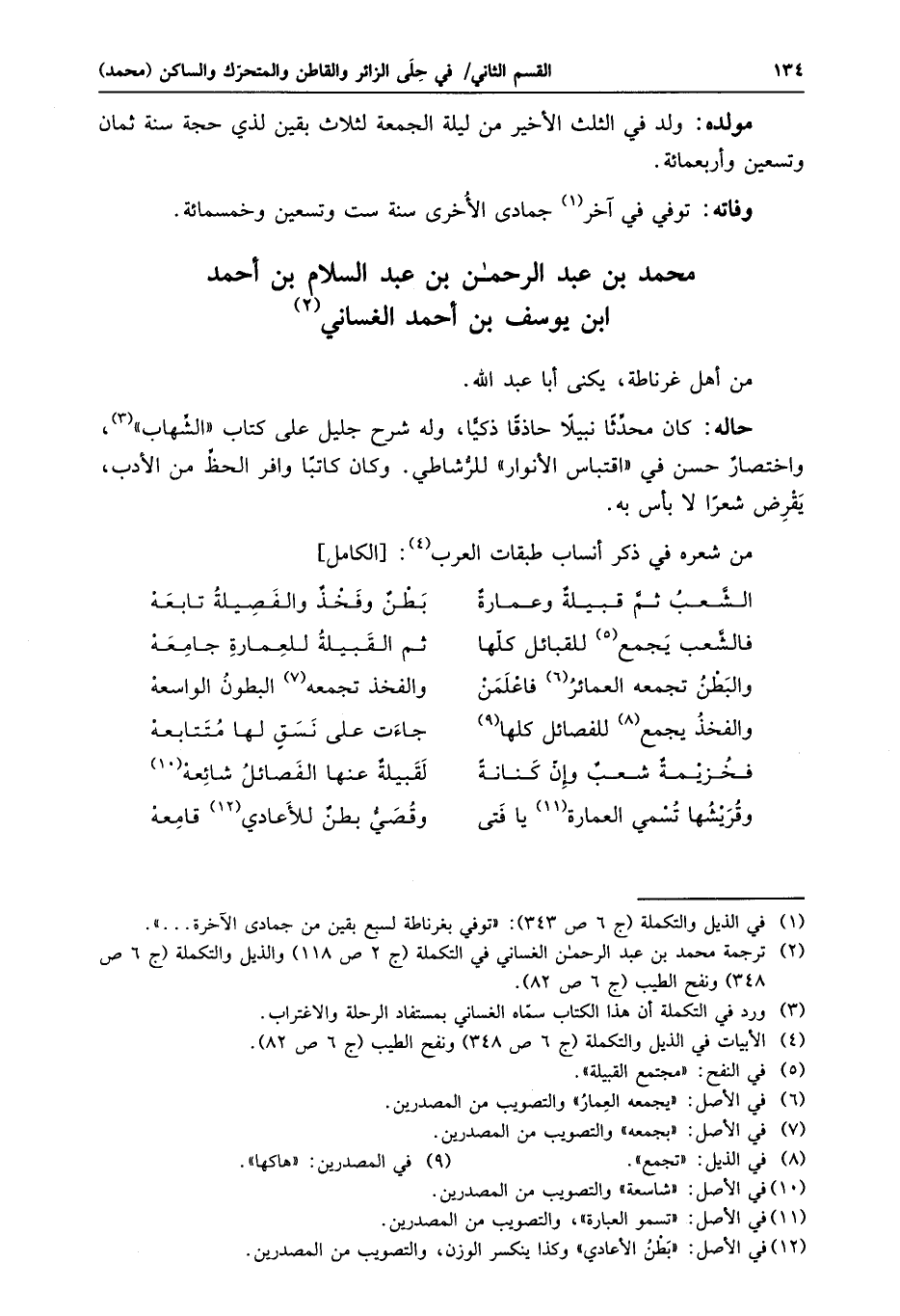محمد بن عبد الرحمن بن عبد السلام بن أحمد ابن يوسف بن أحمد الغساني «2»