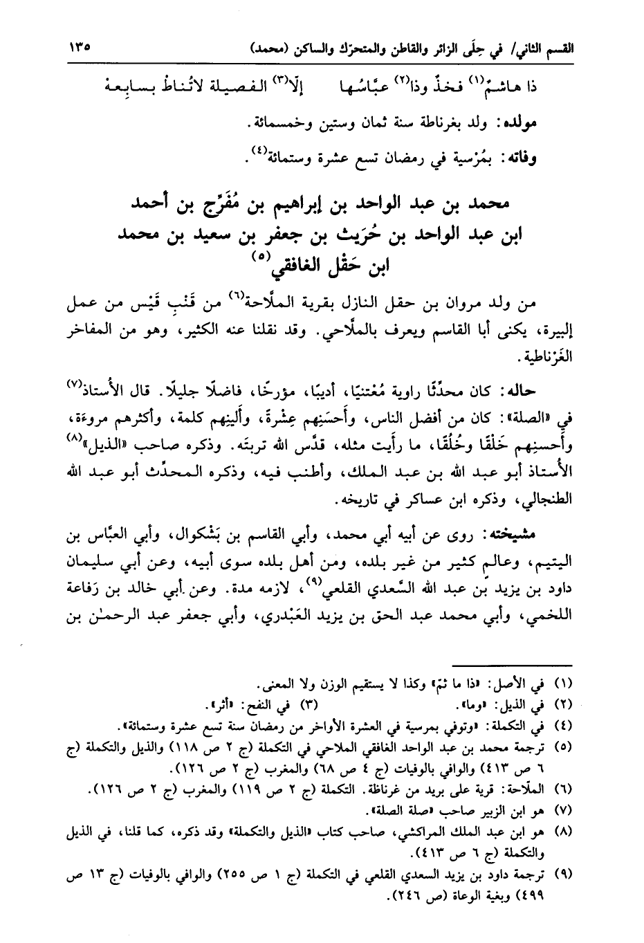 محمد بن عبد الواحد بن إبراهيم بن مفرّج بن أحمد ابن عبد الواحد بن حريث بن جعفر بن سعيد بن محمد ابن حقل الغافقي «5»