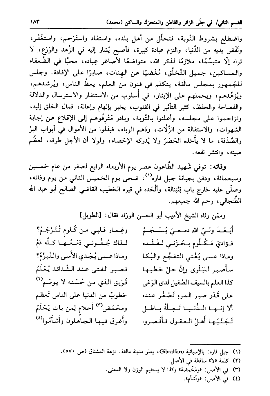 وممّن رثاه الشيخ الأديب أبو الحسن الورّاد فقال: [الطويل]