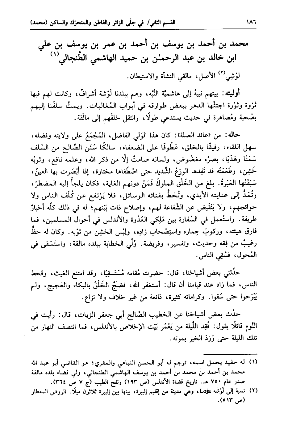 محمد بن أحمد بن يوسف بن أحمد بن عمر بن يوسف بن علي ابن خالد بن عبد الرحمن بن حميد الهاشمي الطّنجالي «1»