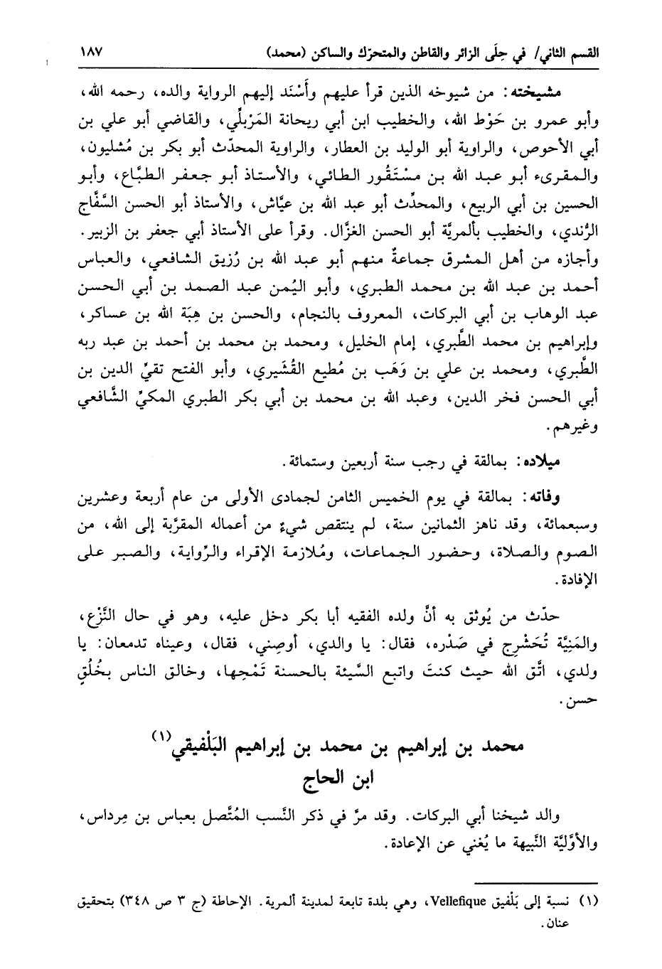 محمد بن إبراهيم بن محمد بن إبراهيم البلفيقي «1» ابن الحاج