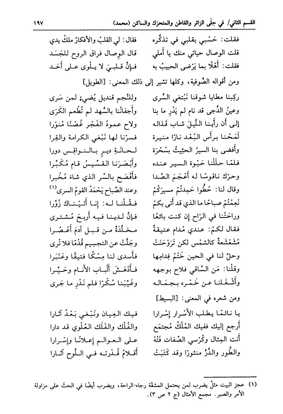 ومن أقواله الصّوفية، وكلها تشير إلى ذلك المعنى: [الطويل]