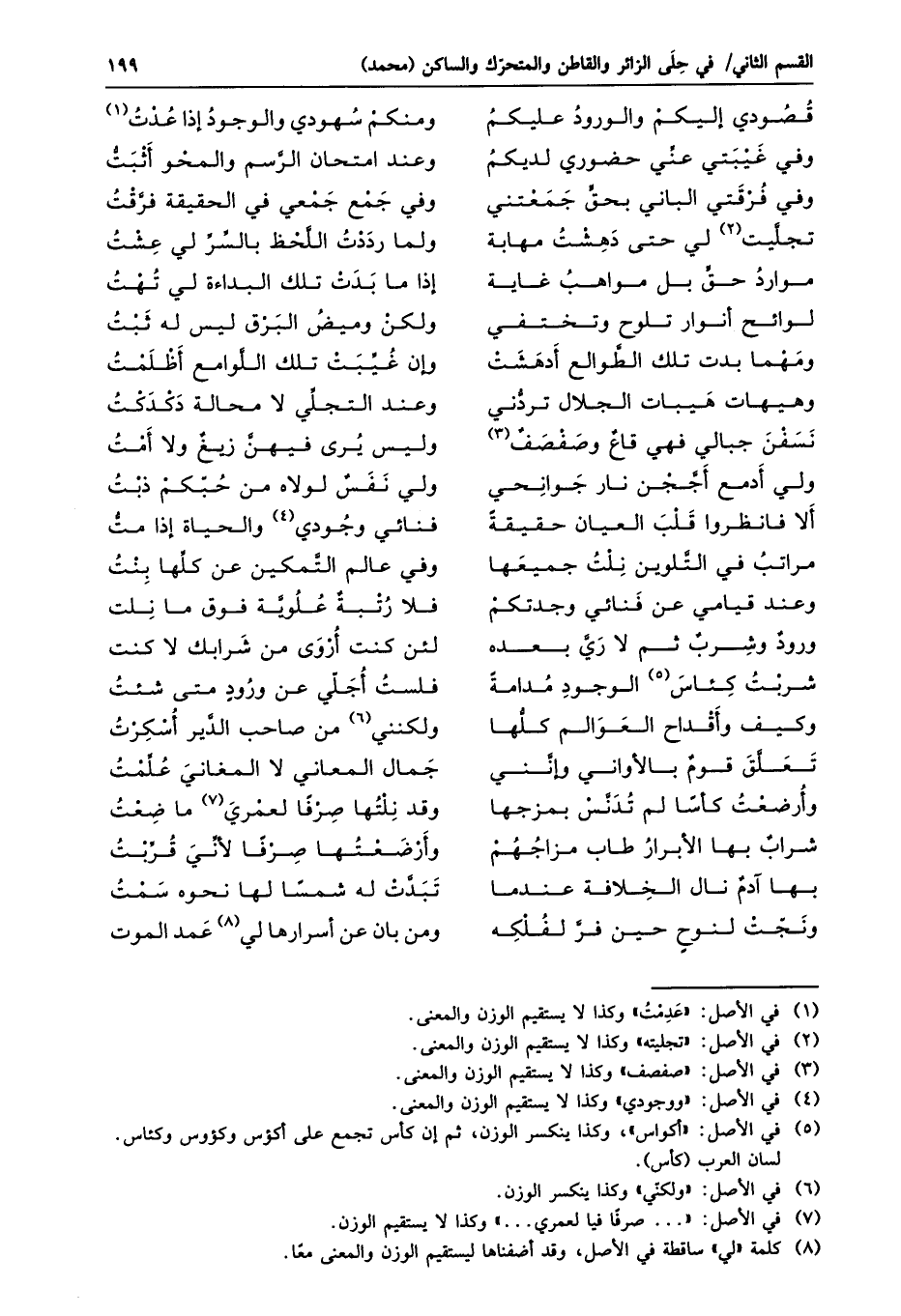 قصودي إليكم والورود عليكم ... ومنكم سهودي والوجود إذا عدت «1»