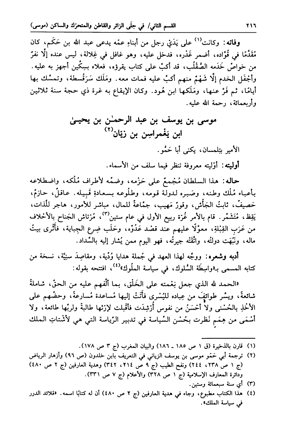 موسى بن يوسف بن عبد الرحمن بن يحيى ابن يغمراسن بن زيّان «2»
