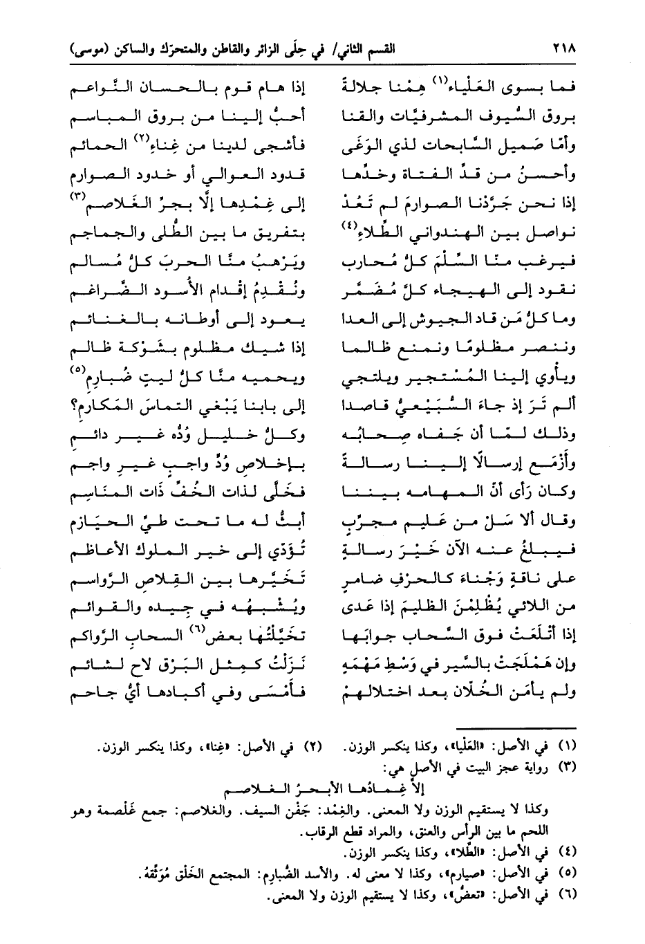 وأمّا صميل السّابحات لذي الوغى ... فأشجى لدينا من غناء «2» الحمائم
