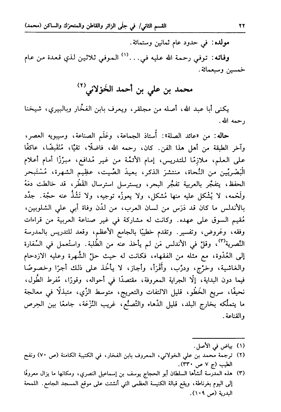يكنى أبا عبد الله، أصله من مجلقر، ويعرف بابن الفخّار وبالبيري، شيخنا رحمه الله.