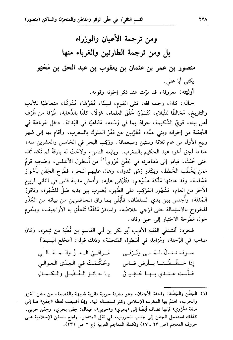 منصور بن عمر بن عثمان بن يعقوب بن عبد الحق بن محيو