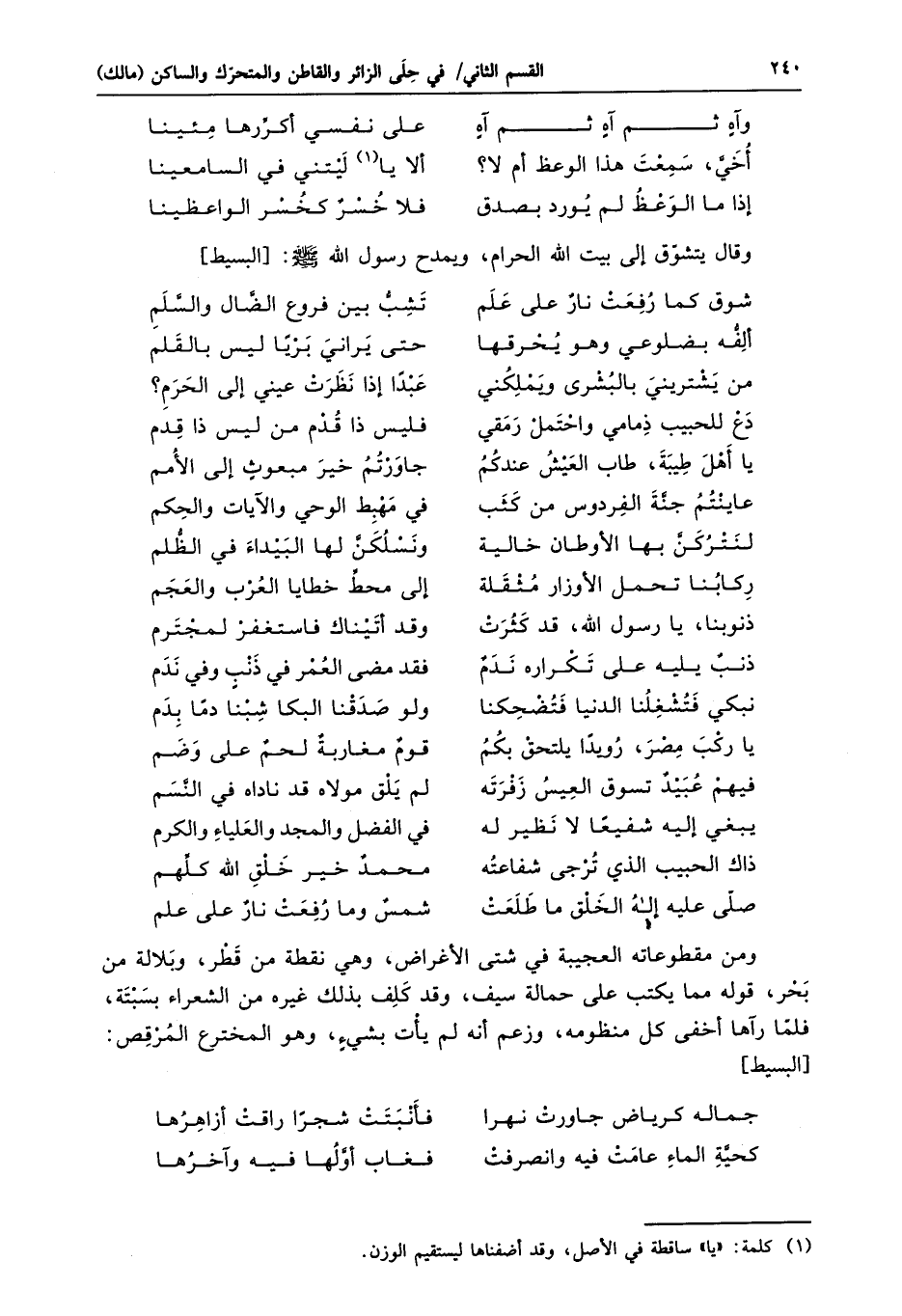 وقال يتشوّق إلى بيت الله الحرام، ويمدح رسول الله صلى الله عليه وسلم: [البسيط]