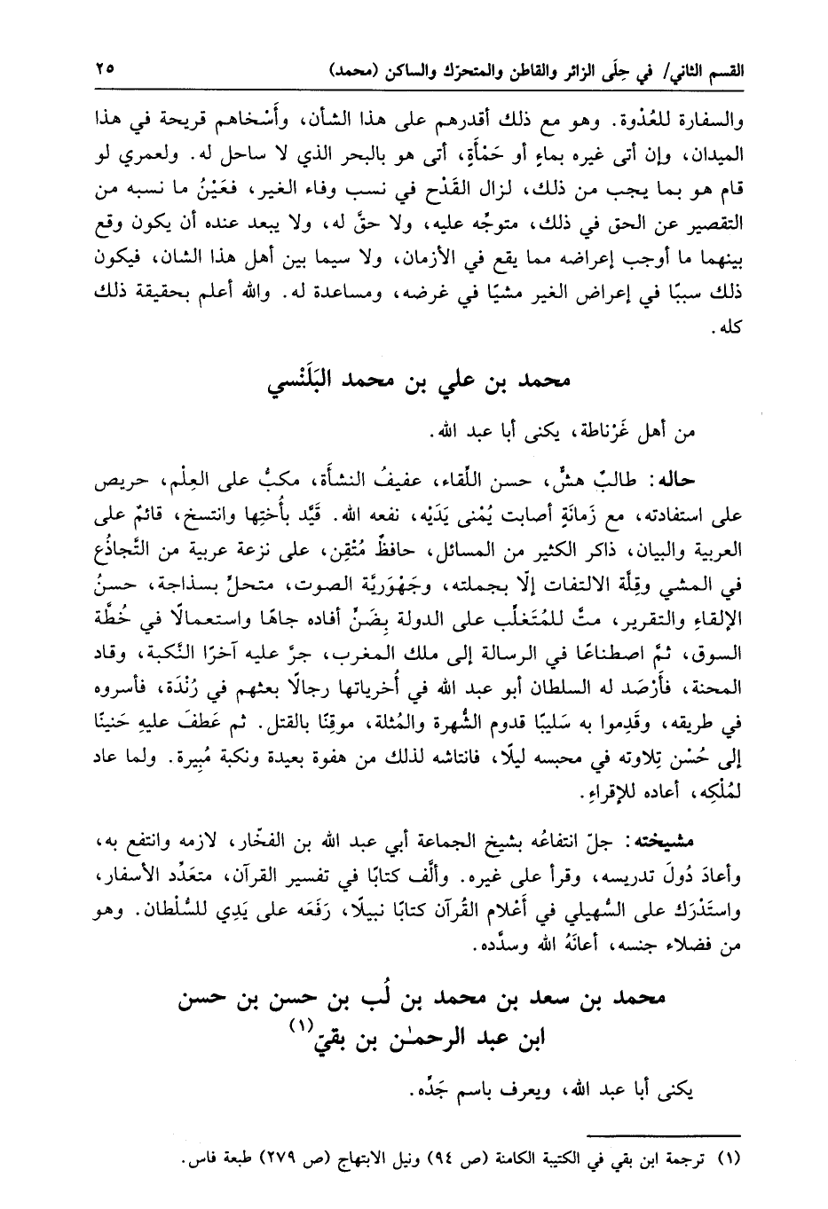 والسفارة للعدوة. وهو مع ذلك أقدرهم على هذا الشأن، وأسخاهم قريحة في هذا الميدان، وإن أتى غيره بماء أو حمأة، أتى هو بالبحر الذي لا ساحل له. ولعمري لو قام هو بما يجب من ذلك، لزال القدح في نسب وفاء الغير، فعين ما نسبه من التقصير عن الحق في ذلك، متوجّه عليه، ولا حقّ له، ولا يبعد عنده أن يكون وقع بينهما ما أوجب إعراضه مما يقع في الأزمان، ولا سيما من أهل هذ الشان، فيكون ذلك سببا في إعراض الغير مشيا في غرضه، ومساعدة له. والله أعلم بحقيقة ذلك كله.