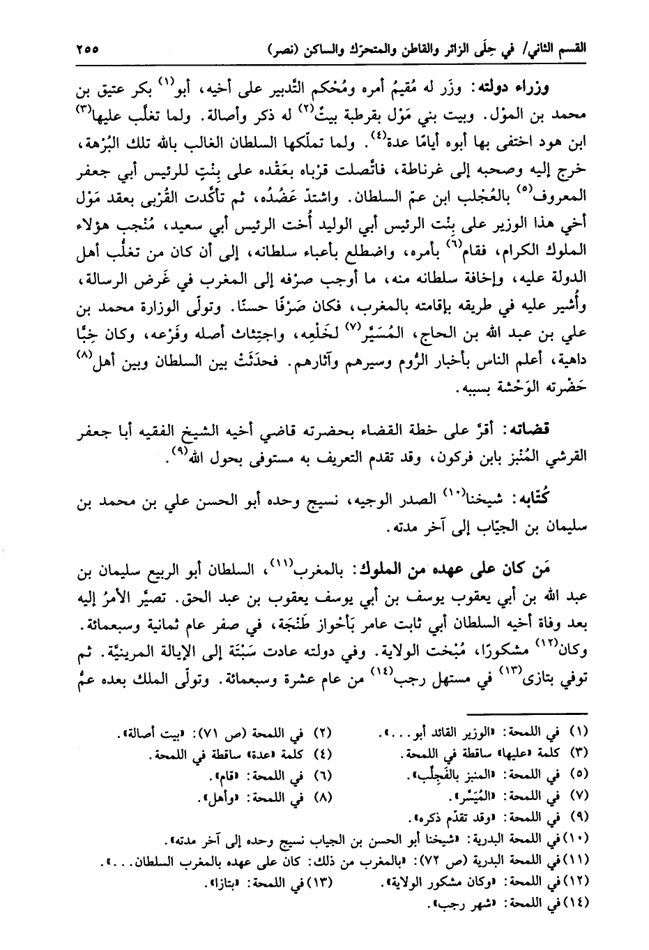 من كان على عهده من الملوك: بالمغرب «11» ، السلطان أبو الربيع سليمان بن عبد الله بن أبي يعقوب يوسف بن أبي يوسف يعقوب بن عبد الحق. تصيّر الأمر إليه بعد وفاة أخيه السلطان أبي ثابت عامر بأحواز طنجة، في صفر عام ثمانية وسبعمائة.