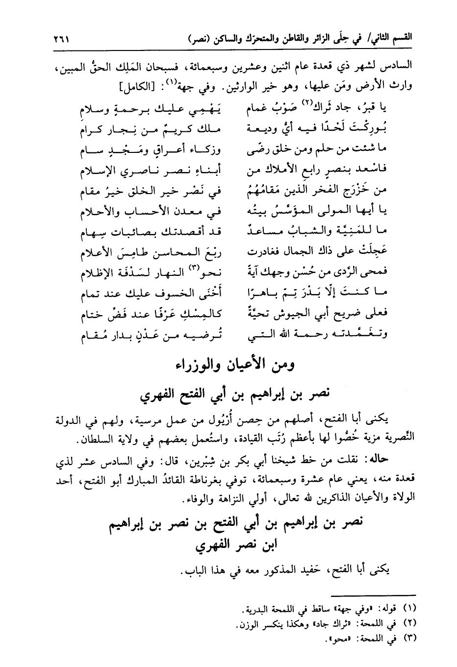 فاسعد بنصر رابع الأملاك من ... أبناء نصر ناصري الإسلام
