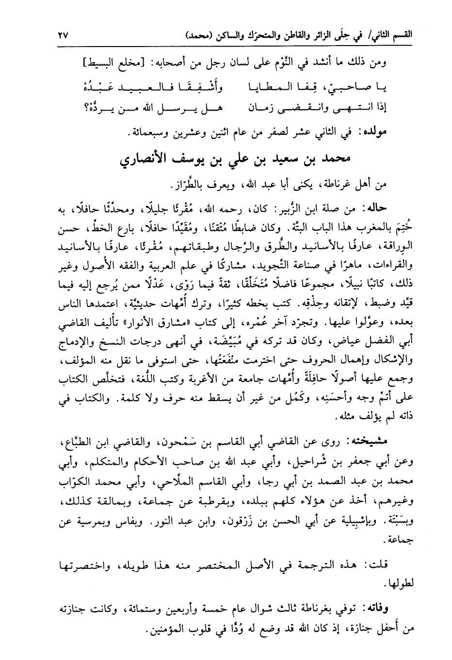 قلت: هذه الترجمة في الأصل المختصر منه هذا طويله، واختصرتها لطولها.