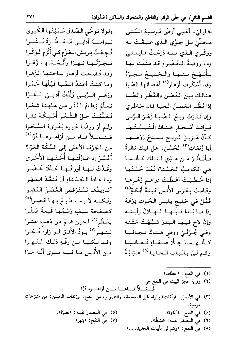 وفي جرفي روض هناك تجافيا ... لنهر «7» يودّ الأفق لو زاره فجرا