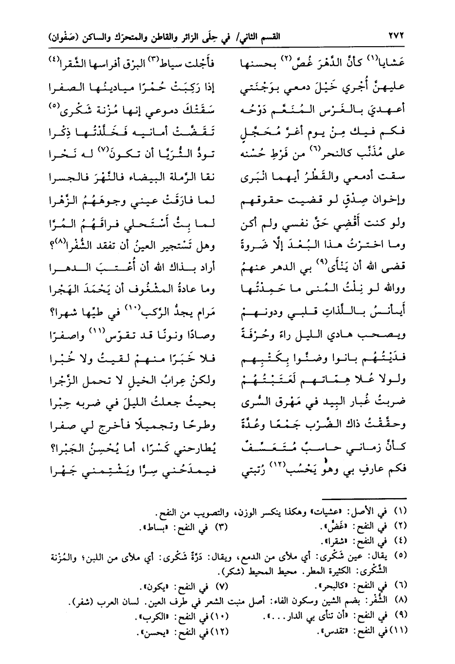 وما اخترت هذا البعد إلّا ضروة ... وهل تستجير العين أن تفقد الشّفرا «8» ؟