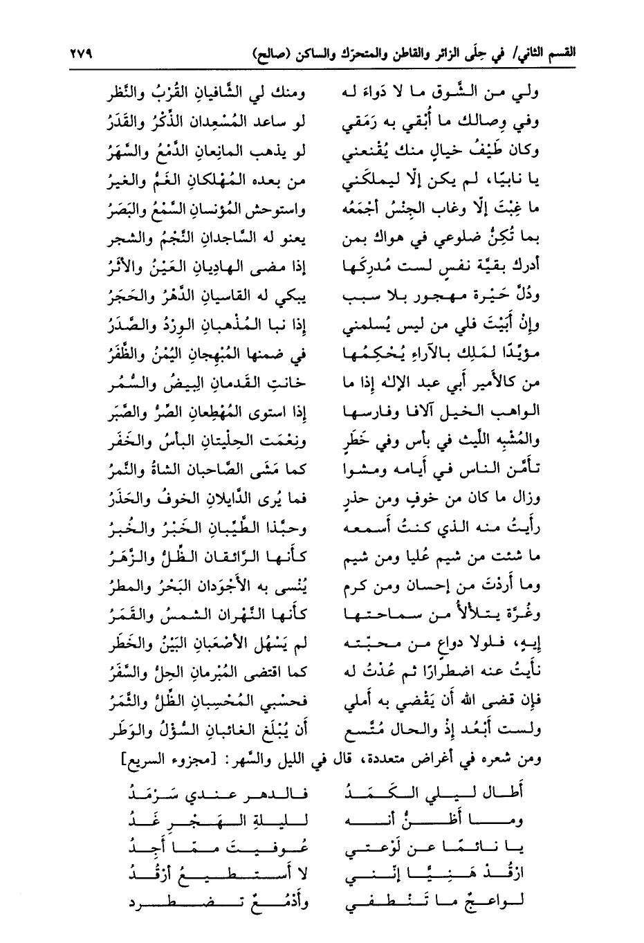 ولي من الشّوق ما لا دواء له ... ومنك لي الشّافيان القرب والنّظر