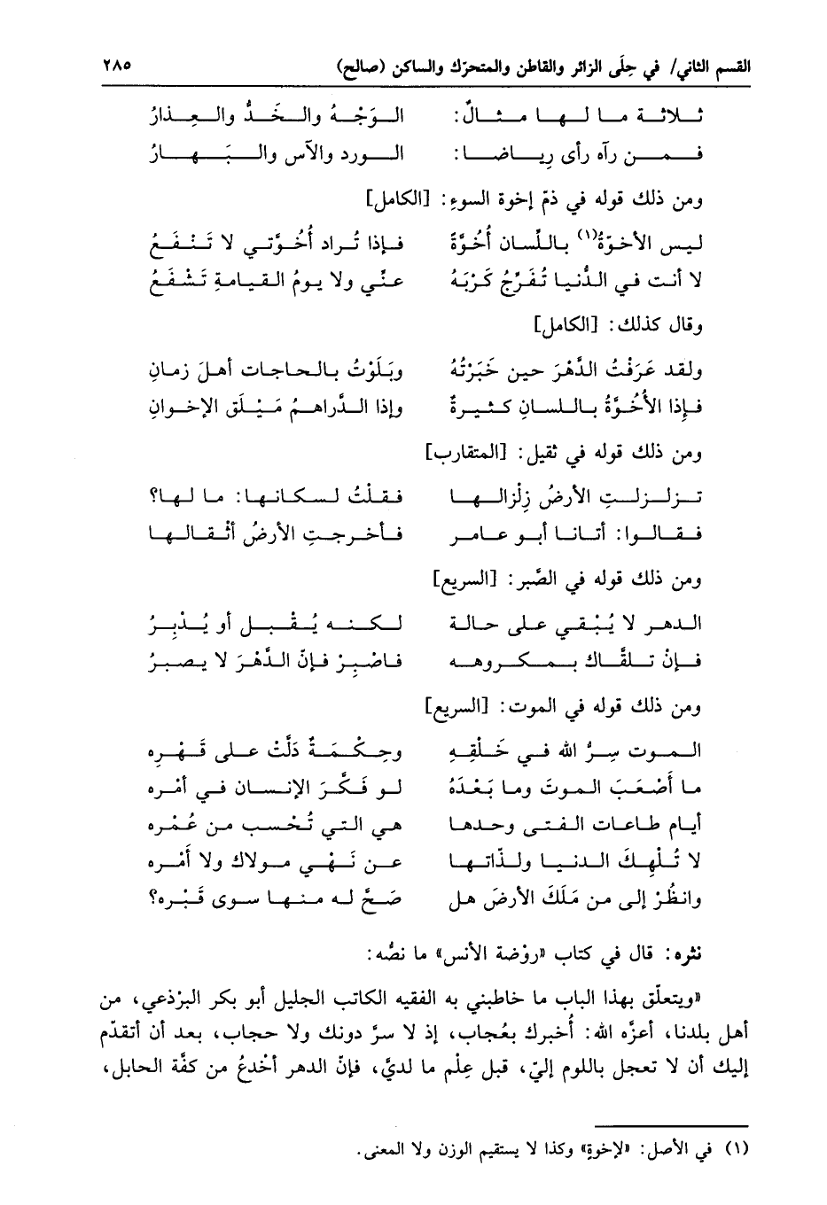 ومن ذلك قوله في ذمّ إخوة السوء: [الكامل]