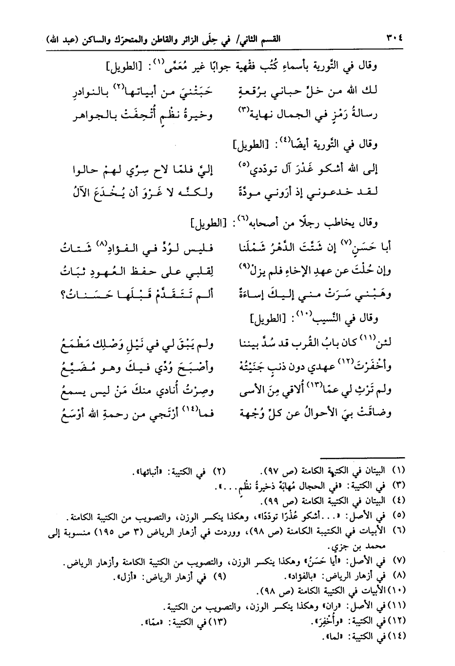 وقال في التّورية بأسماء كتب فقهية جوابا غير معمّى «1» : [الطويل]