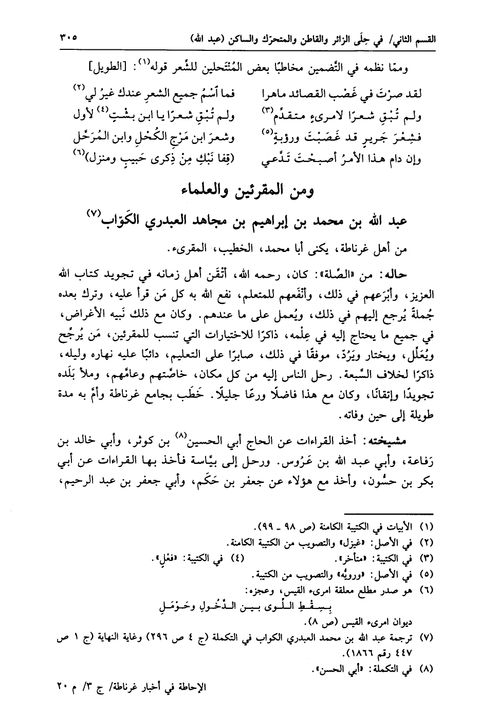 من أهل غرناطة، يكنى أبا محمد، الخطيب، المقرئ.