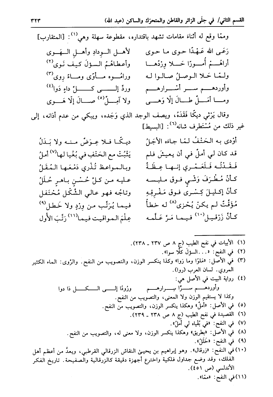 وممّا وقع له أثناء مقامات تشهد باقتداره، مقطوعة سهلة وهي «1» : [المتقارب]
