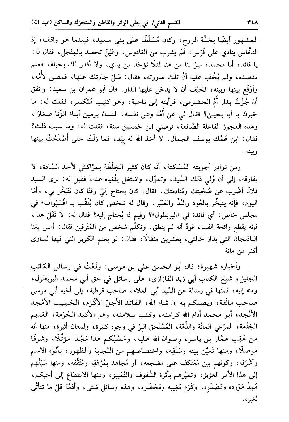 المشهور أيضا بخفّة الروح، وكان مسلّطا على بني سعيد، فبينما هو واقف، إذ النخّاس ينادي على فرس: فم يشرب من القادوس، وعين تحصد بالمنجل، فقال له:
