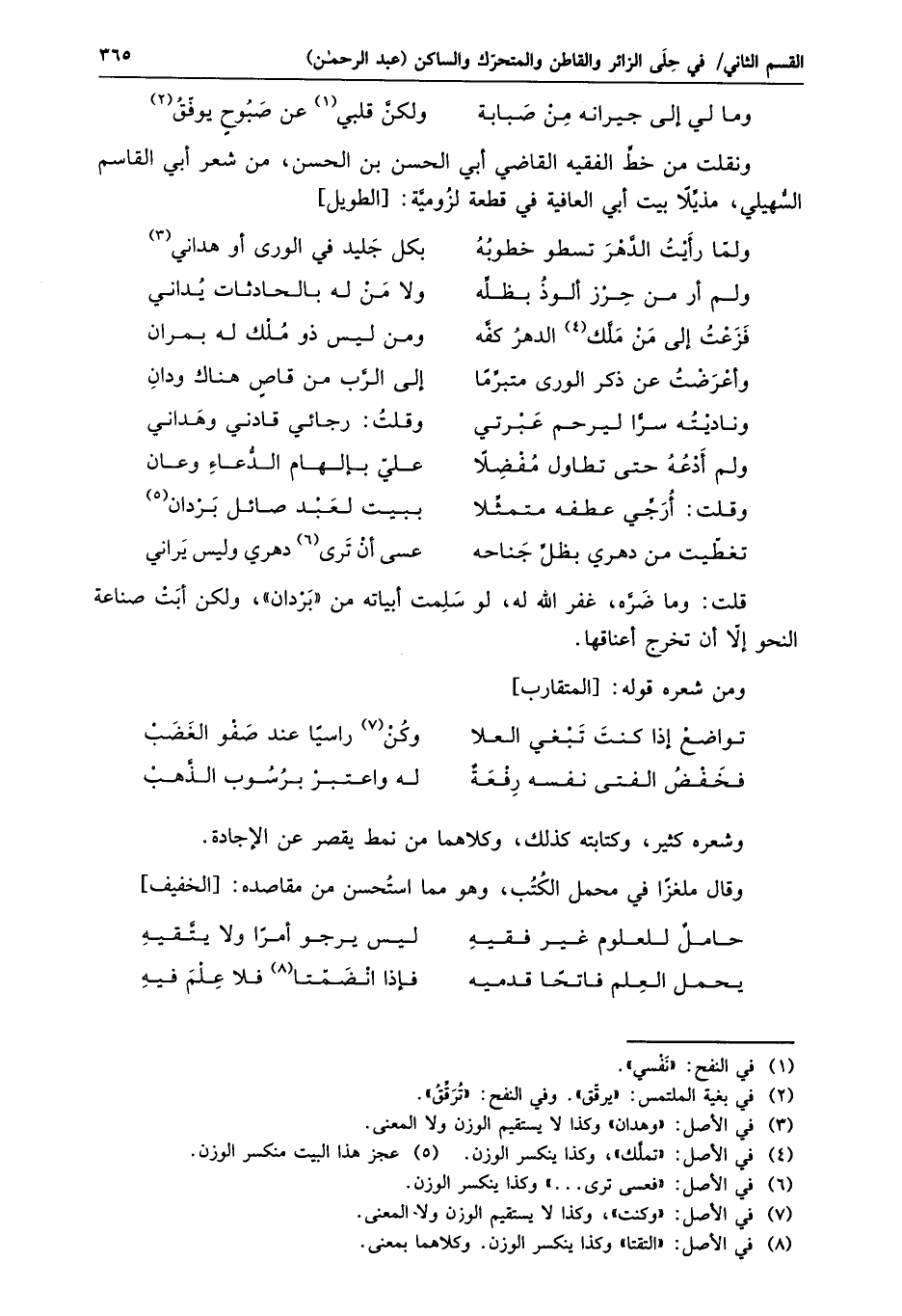 ونقلت من خطّ الفقيه القاضي أبي الحسن بن الحسن، من شعر أبي القاسم السّهيلي، مذيّلا بيت أبي العافية في قطعة لزوميّة: [الطويل]