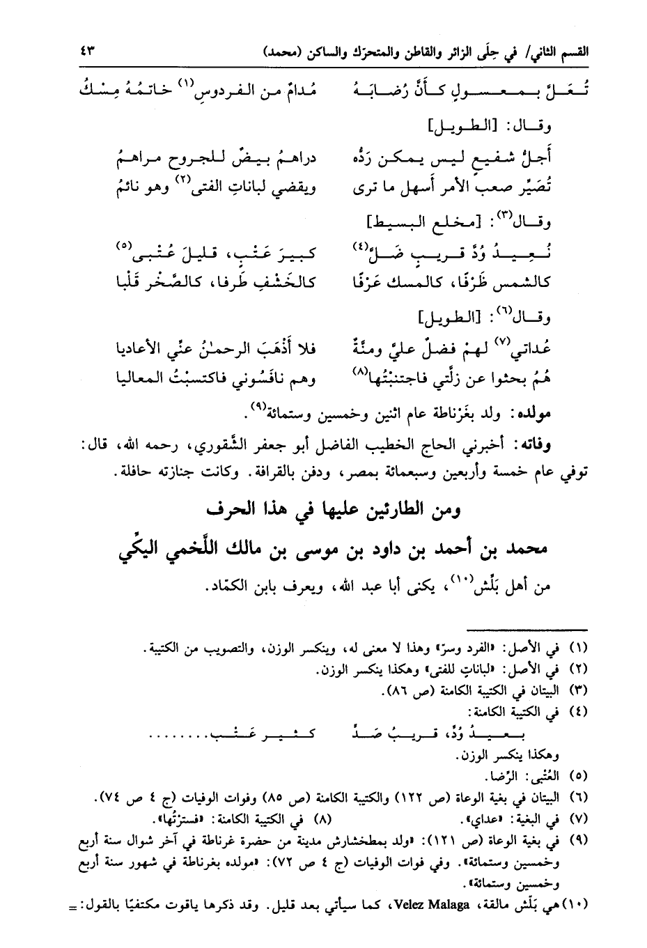 من أهل بلّش «10» ، يكنى أبا عبد الله، ويعرف بابن الكمّاد.
