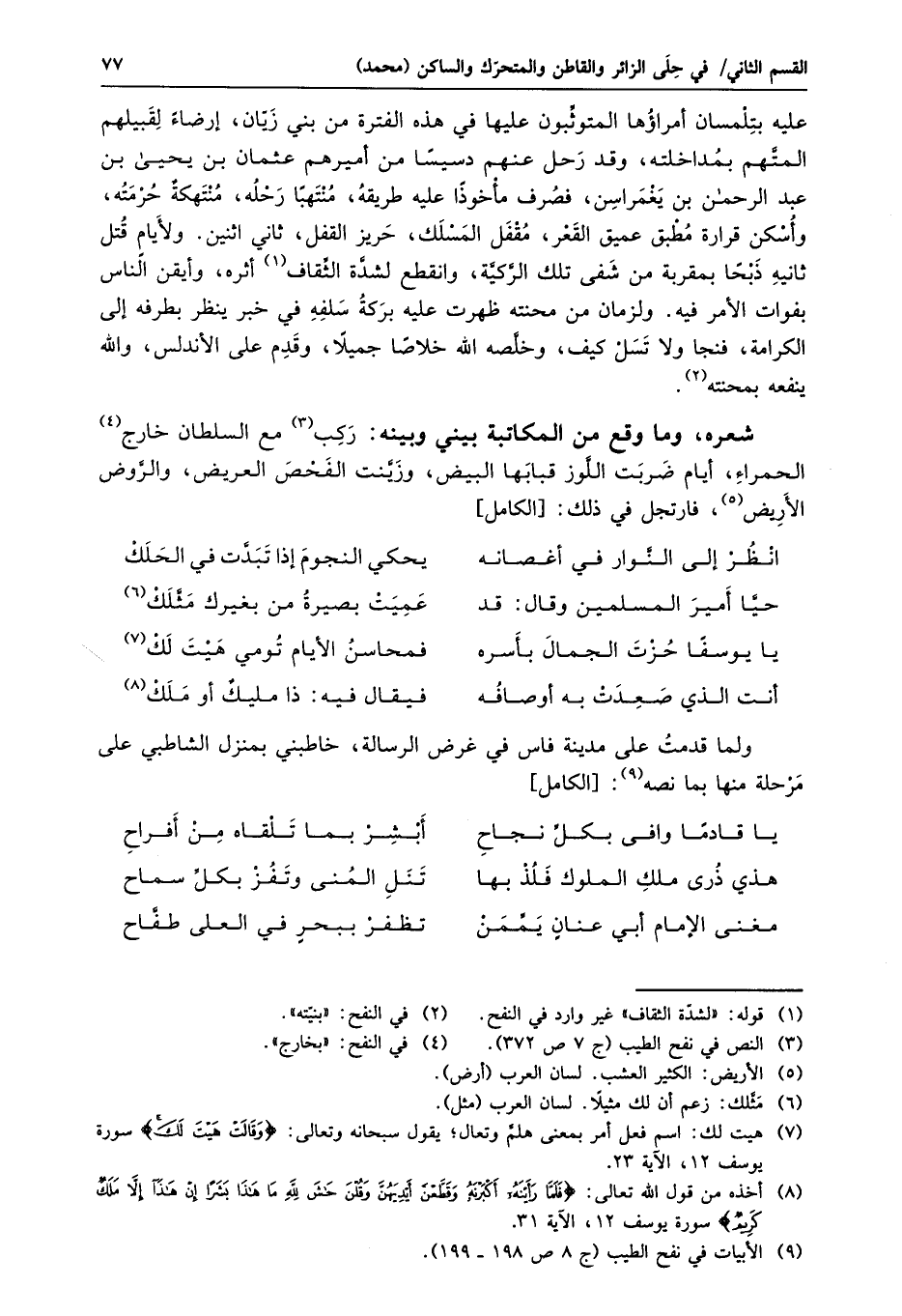 ولما قدمت على مدينة فاس في غرض الرسالة، خاطبني بمنزل الشاطبي على مرحلة منها بما نصه «9» : [الكامل]