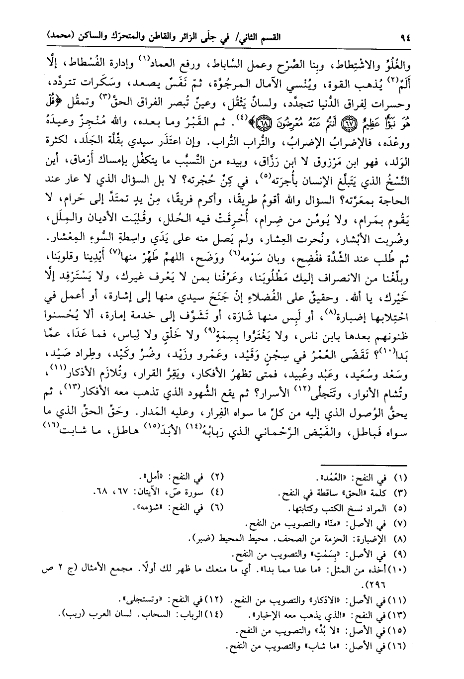 ثم طلب عند الشّدّة ففضح، وبان سومه «6» ووضح، اللهمّ طهّر منها «7» أيدينا وقلوبنا، وبلّغنا من الانصراف إليك مطلوبنا، وعرّفنا بمن لا يعرف غيرك، ولا يسترفد إلّا خيرك، يا الله. وحقيق على الفضلاء إن جنح سيدي منها إلى إشارة، أو أعمل في احتلابها إضبارة «8» ، أو لبس منها شارة، أو تشوّف إلى خدمة إمارة، ألا يحسنوا ظنونهم بعدها بابن ناس، ولا يغترّوا بسمة «9» ولا خلق ولا لباس، فما عدا، عمّا بدا «10» ؟ تقضّى العمر في سجن وقيد، وعمرو وزيد، وضرّ وكيد، وطراد صيد، وسعد وسعيد، وعبد وعبيد، فمتى تظهر الأفكار، ويقرّ القرار، وتلازم الأذكار «11» ، وتشام الأنوار، وتتجلّى «12» الأسرار؟ ثم يقع الشّهود الذي تذهب معه الأفكار «13» ، ثم يحقّ الوصول الذي إليه من كلّ ما سواه الفرار، وعليه المدار. وحقّ الحقّ الذي ما سواه فباطل، والفيض الرّحماني الذي ربابه «14» الأبد «15» هاطل، ما شابت «16»