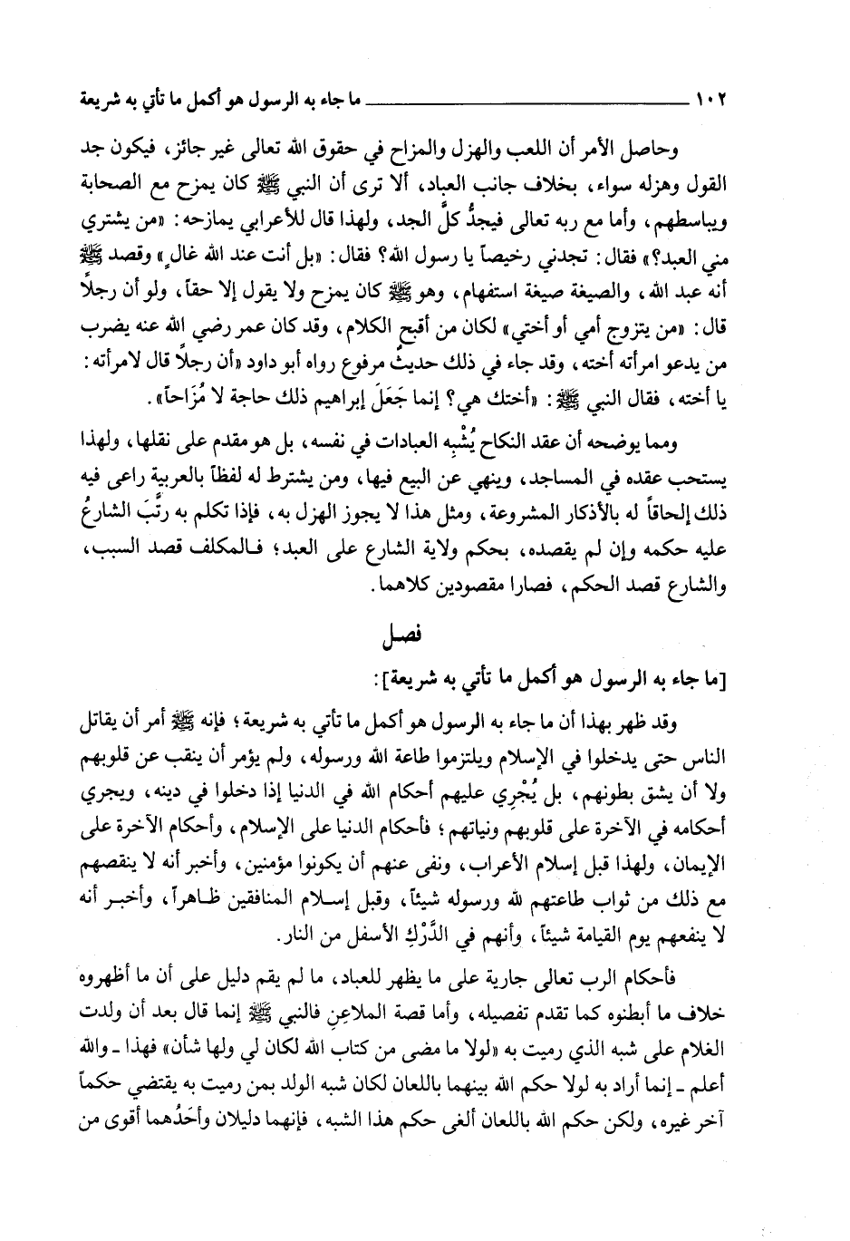 وَمِمَّا يُوَضِّحُهُ أَنَّ عَقْدَ النِّكَاحِ يُشْبِهُ الْعِبَادَاتِ فِي نَفْسِهِ، بَلْ هُوَ مُقَدَّمٌ عَلَى نَقْلِهَا، وَلِهَذَا يُسْتَحَبُّ عَقْدُهُ فِي الْمَسَاجِدِ، وَيَنْهَى عَنْ الْبَيْعِ فِيهَا، وَمَنْ يَشْتَرِطُ لَهُ لَفْظًا بِالْعَرَبِيَّةِ رَاعَى فِيهِ ذَلِكَ إلْحَاقًا لَهُ بِالْأَذْكَارِ الْمَشْرُوعَةِ، وَمِثْلُ هَذَا لَا يَجُوزُ الْهَزْلُ بِهِ، فَإِذَا تَكَلَّمَ بِهِ رَتَّبَ الشَّارِعُ عَلَيْهِ حُكْمَهُ وَإِنْ لَمْ يَقْصِدْهُ، بِحُكْمِ وِلَايَةِ الشَّارِعِ عَلَى الْعَبْدِ، فَالْمُكَلَّفُ قَصَدَ السَّبَبَ، وَالشَّارِعُ قَصَدَ الْحُكْمَ، فَصَارَا مَقْصُودَيْنِ كِلَاهُمَا.