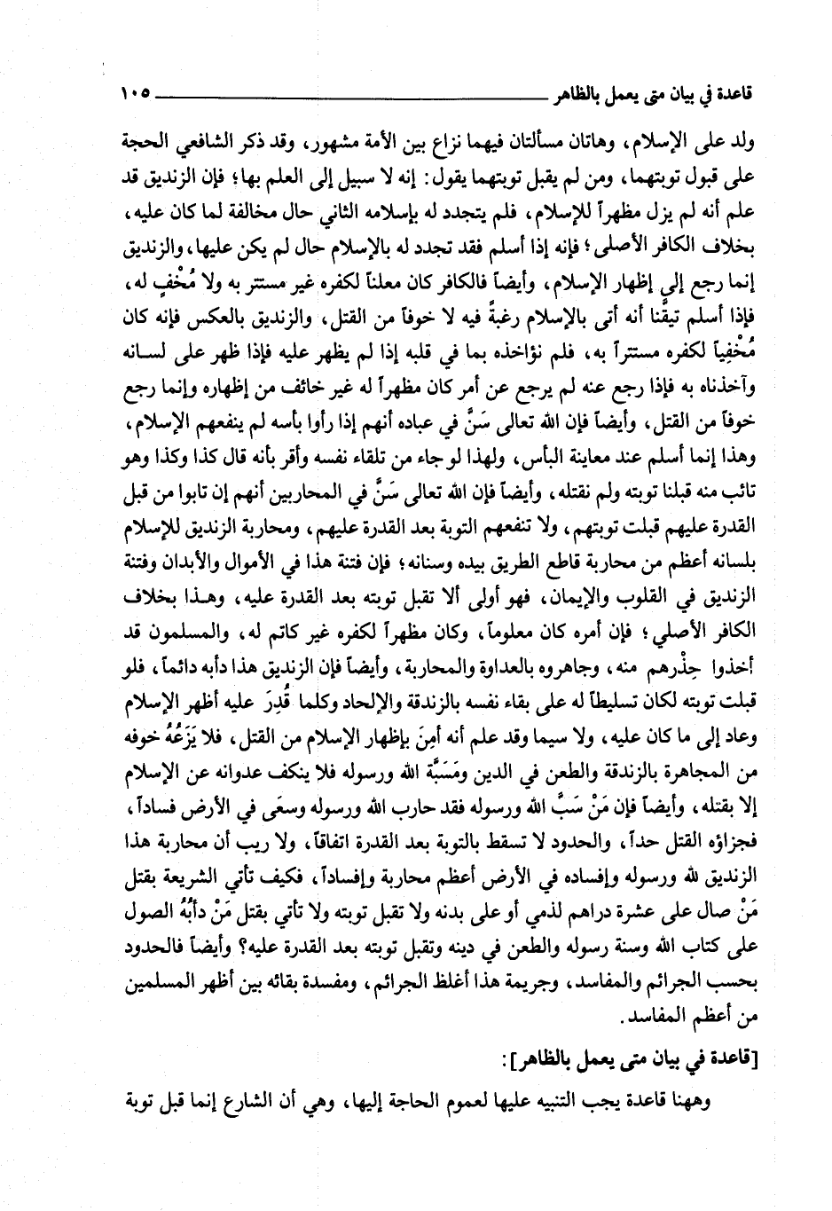 [قَاعِدَةٌ فِي بَيَانِ مَتَى يُعْمَلُ بِالظَّاهِرِ]