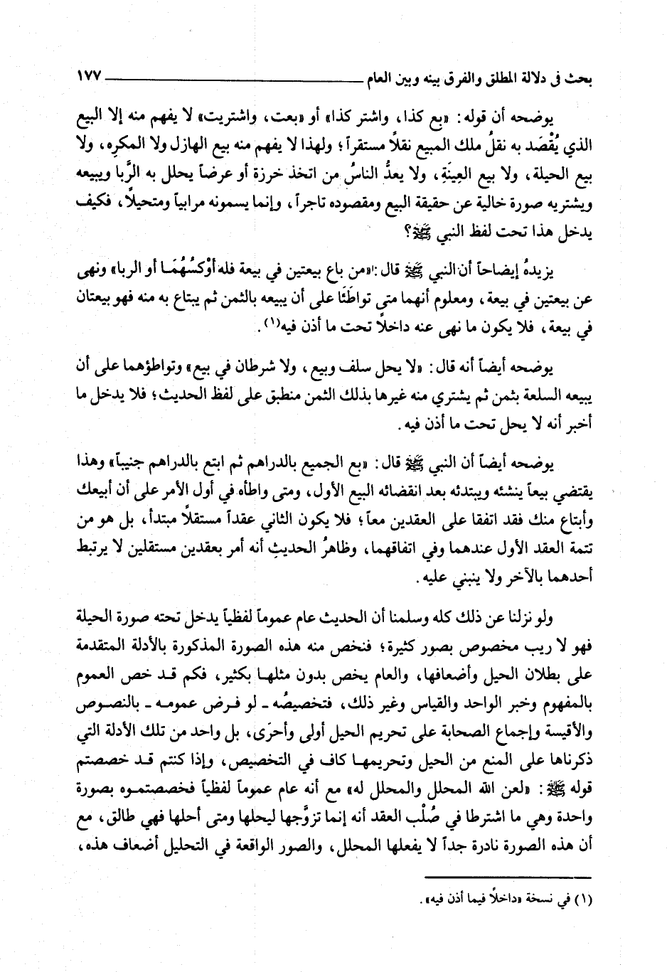 وَلَوْ نَزَلْنَا عَنْ ذَلِكَ كُلِّهِ وَسَلَّمْنَا أَنَّ الْحَدِيثَ عَامٌّ عُمُومًا لَفْظِيًّا يَدْخُلُ تَحْتَهُ صُورَةُ الْحِيلَةِ فَهُوَ لَا رَيْبَ مَخْصُوصٌ بِصُوَرٍ كَثِيرَةٍ؛ فَنَخُصُّ مِنْهُ هَذِهِ الصُّورَةَ الْمَذْكُورَةَ بِالْأَدِلَّةِ الْمُتَقَدِّمَةِ عَلَى بُطْلَانِ الْحِيَلِ وَأَضْعَافِهَا، وَالْعَامُّ يُخَصُّ بِدُونِ مِثْلِهَا بِكَثِيرٍ، فَكَمْ قَدْ خُصَّ الْعُمُومُ بِالْمَفْهُومِ وَخَبَرِ الْوَاحِدِ وَالْقِيَاسِ وَغَيْرِ ذَلِكَ، فَتَخْصِيصُهُ - لَوْ فُرِضَ عُمُومُهُ - بِالنُّصُوصِ وَالْأَقْيِسَةِ وَإِجْمَاعِ الصَّحَابَةِ عَلَى تَحْرِيمِ الْحِيَلِ أَوْلَى وَأَحْرَى، بَلْ وَاحِدٌ مِنْ تِلْكَ الْأَدِلَّةِ الَّتِي ذَكَرْنَاهَا عَلَى الْمَنْعِ مِنْ الْحِيَل وَتَحْرِيمِهَا كَافٍ فِي التَّخْصِيصِ، وَإِذَا كُنْتُمْ قَدْ خَصَّصْتُمْ قَوْلَهُ - صَلَّى اللَّهُ عَلَيْهِ وَسَلَّمَ -: «لَعَنَ اللَّهُ الْمُحَلِّلَ وَالْمُحَلَّلَ لَهُ» مَعَ أَنَّهُ عَامٌّ عُمُومًا لَفْظِيًّا فَخَصَصْتُمُوهُ بِصُورَةٍ وَاحِدَةٍ وَهِيَ مَا اشْتَرَطَا فِي صُلْبِ الْعَقْدِ أَنَّهُ إنَّمَا تَزَوَّجَهَا لِيَحِلَّهَا وَمَتَى أَحَلَّهَا فَهِيَ طَالِقٌ، مَعَ أَنَّ هَذِهِ الصُّورَةَ نَادِرَةٌ جِدًّا لَا يَفْعَلُهَا الْمُحَلِّلُ، وَالصُّوَرُ الْوَاقِعَةُ فِي التَّحْلِيلِ أَضْعَافُ هَذِهِ،