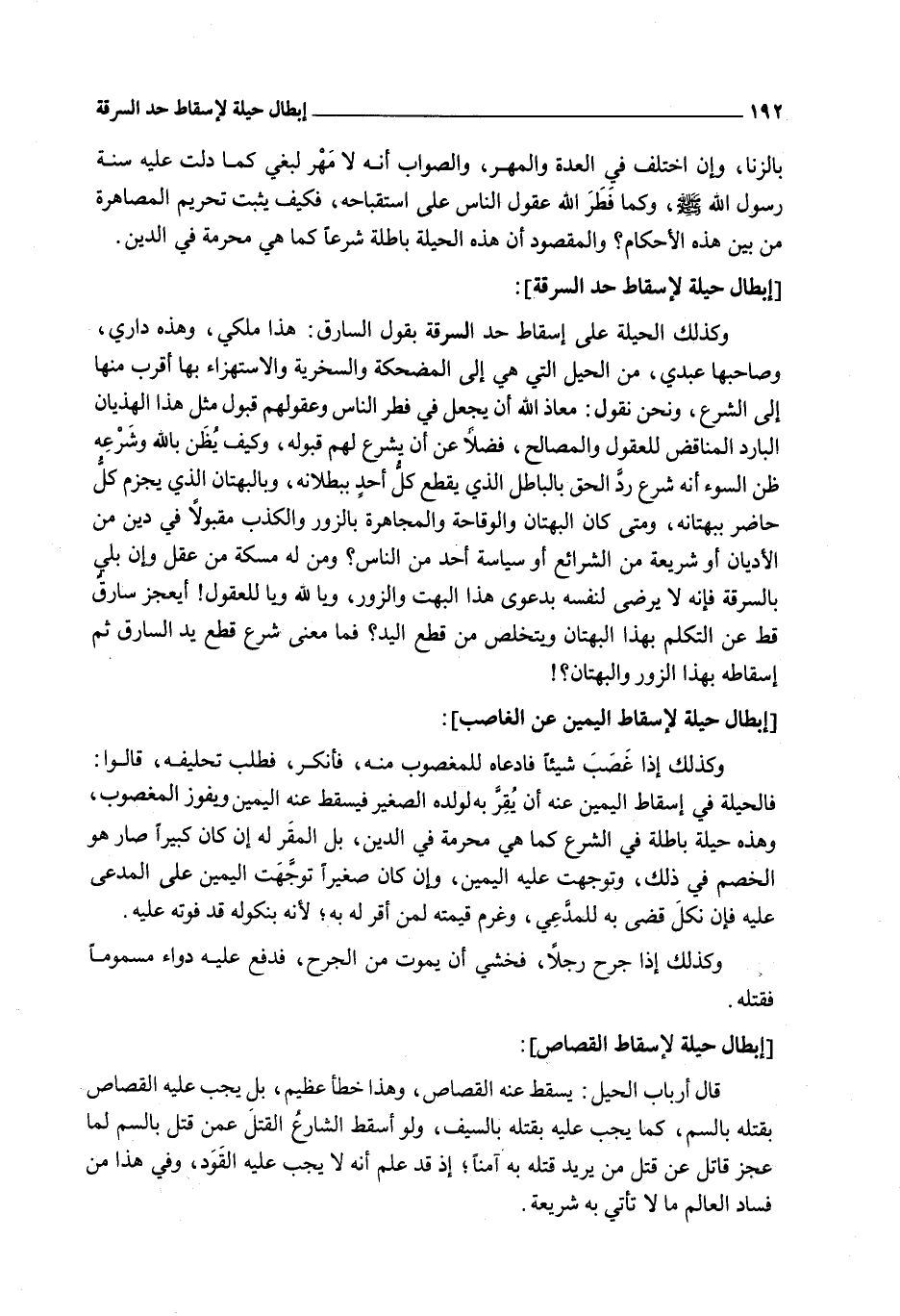 وَمَتَى كَانَ الْبُهْتَانُ وَالْوَقَاحَةُ وَالْمُجَاهَرَةُ بِالزُّورِ وَالْكَذِبِ مَقْبُولًا فِي دِينٍ مِنْ الْأَدْيَانِ أَوْ شَرِيعَةٍ مِنْ الشَّرَائِعِ أَوْ سِيَاسَةِ أَحَدٍ مِنْ النَّاسِ؟ وَمَنْ لَهُ مُسْكَةٌ مِنْ عَقْلٍ وَإِنْ بُلِيَ بِالسَّرِقَةِ فَإِنَّهُ لَا يَرْضَى لِنَفْسِهِ بِدَعْوَى هَذَا الْبُهُتِ وَالزُّورِ، وَيَا لِلَّهِ وَيَا لَلْعُقُولِ، أَيَعْجِزُ سَارِقٌ قَطُّ عَنْ التَّكَلُّمِ بِهَذَا الْبُهْتَانِ وَيَتَخَلَّصُ مِنْ قَطْعِ الْيَدِ؟ فَمَا مَعْنَى شَرْعِ قَطْعِ يَدِ السَّارِقِ ثُمَّ إسْقَاطِهِ بِهَذَا الزُّورِ وَالْبُهْتَانِ؟ ،.