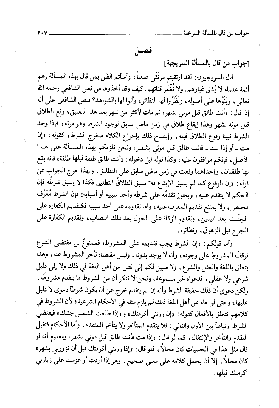 [جَوَابُ مَنْ قَالَ بِالْمَسْأَلَةِ السُّرَيْجِيَّةِ]