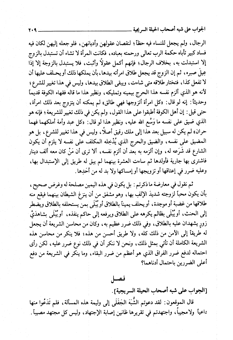 [الْجَوَابُ عَلَى شُبَهِ أَصْحَابِ الْحِيلَةِ السُّرَيْجِيَّةِ]