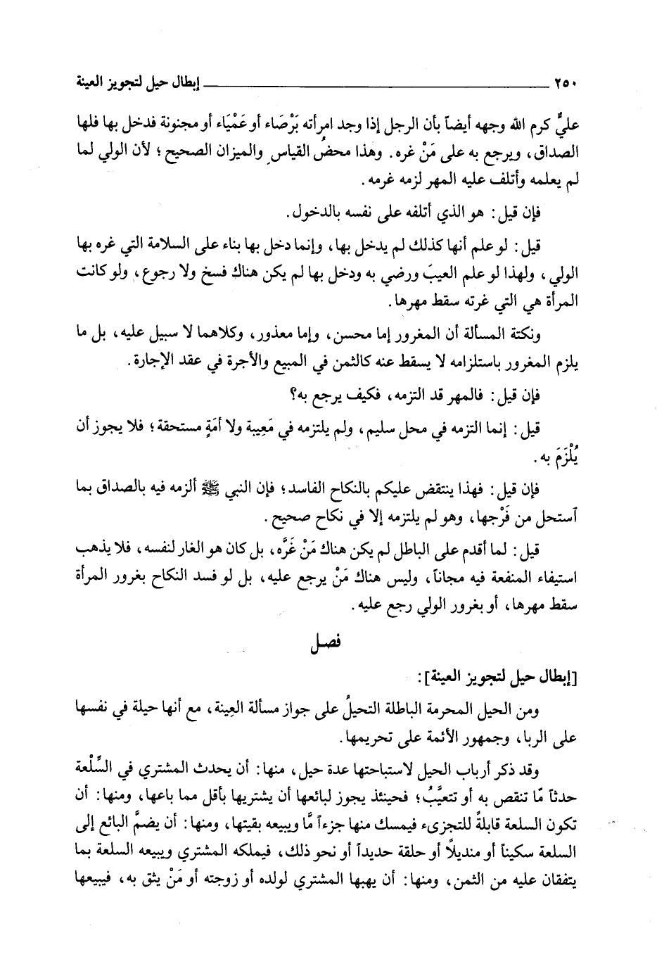 [إبْطَالُ حِيَلٍ لِتَجْوِيزِ الْعِينَةِ] : وَمِنْ الْحِيَلِ الْمُحَرَّمَةِ الْبَاطِلَةِ التَّحَيُّلُ عَلَى جَوَازِ مَسْأَلَةِ الْعِينَةِ، مَعَ أَنَّهَا حِيلَةٌ فِي نَفْسِهَا عَلَى الرِّبَا، وَجُمْهُورُ الْأَئِمَّةِ عَلَى تَحْرِيمِهَا.