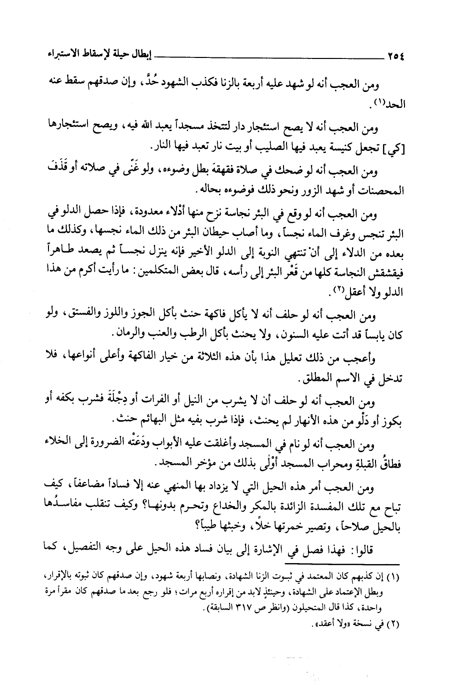وَمِنْ الْعَجَبِ أَمْرُ هَذِهِ الْحِيَلِ الَّتِي لَا يَزْدَادُ بِهَا الْمَنْهِيُّ عَنْهُ إلَّا فَسَادًا مُضَاعَفًا، كَيْفَ تُبَاحُ مَعَ تِلْكَ الْمَفْسَدَةِ الزَّائِدَةِ بِالْمَكْرِ وَالْخِدَاعِ وَتُحَرَّمُ بِدُونِهَا؟ وَكَيْفَ تَنْقَلِبُ مَفَاسِدُهَا بِالْحِيَلِ صَلَاحًا، وَتَصِيرُ خَمْرَتُهَا خَلًّا، وَخُبْثُهَا طِيبًا؟ قَالُوا: فَهَذَا فَصْلٌ فِي الْإِشَارَةِ إلَى بَيَانِ فَسَادِ هَذِهِ الْحِيَلِ عَلَى وَجْهِ التَّفْصِيلِ، كَمَا